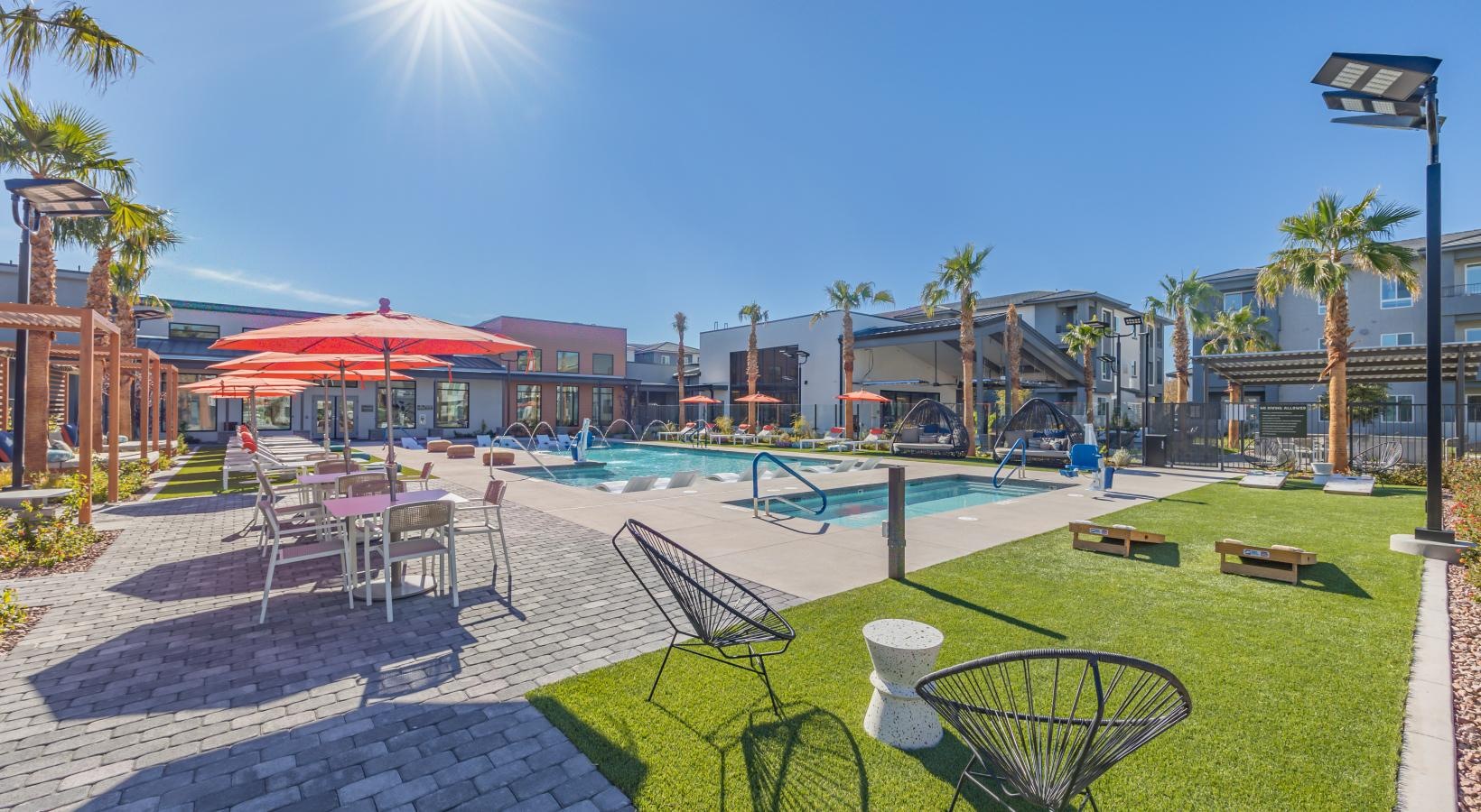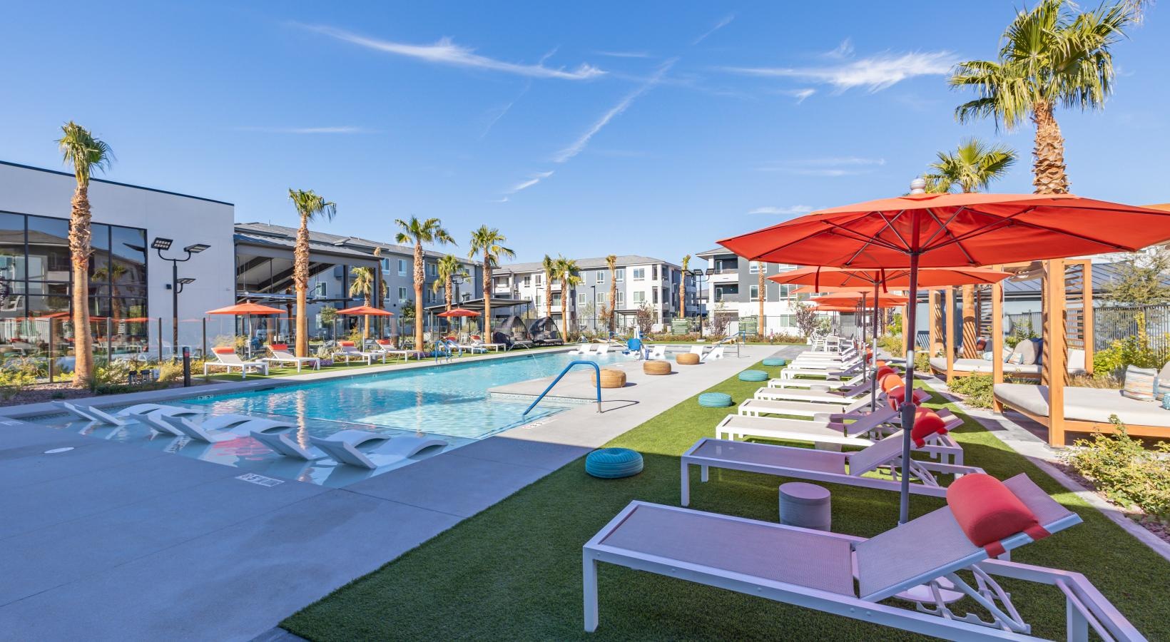 Alma Apartment Homes gives you the best of both worlds. Luxurious residences, first-class amenities, and a well-connected address near Las Vegas blend seamlessly with scenic nature realms. Boasting a beautiful selection of studio, one, two, and three-bedroom layouts, our apartments for rent in Henderson, NV, are ready to imbue your life with upscale comforts and endless entertainment options. So look at our photo gallery to get the first taste of our community!